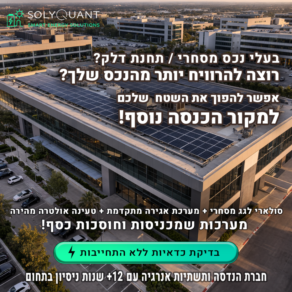 כאשר משלבים תכנון נכון עם ניתוח צריכה מדויק, המערכת הסולארית אינה רק פתרון אנרגטי אלא מהלך עסקי שמייצר ערך מתמשך.
