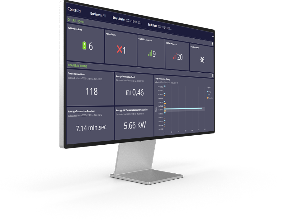פלטפורמת הניהול מאפשרת ללקוחותינו ניהול קל ויעיל של עמדות הטעינה באתרים השונים שלהם.